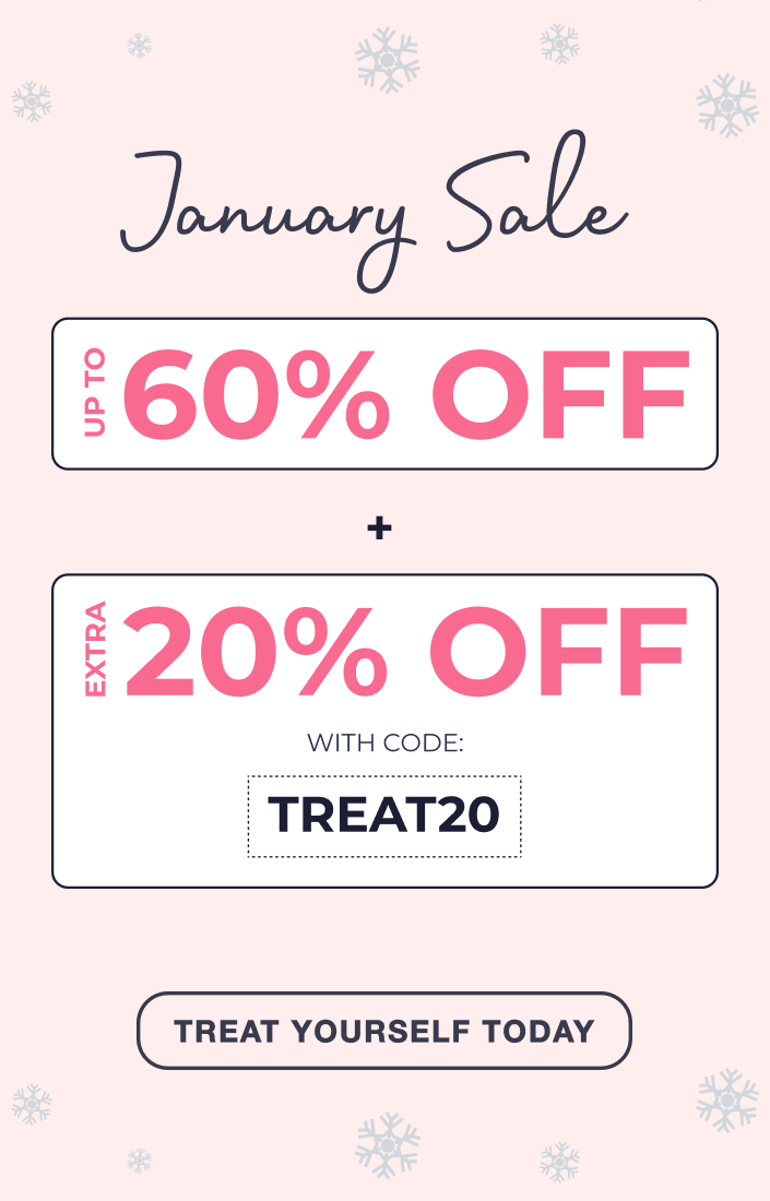 UP TO 60% OFF JANUARY SALE + EXTRA 20% OFF WITH CODE: TREAT20