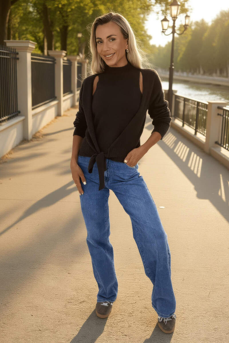 Be right on trend this season in our unique AX Paris chocolate 2 in 1 tie front jumper cardigan. Featuring a tie waist cardigan with an attached mock neck racer top. Pair it with some jeans and chunky boots for a cute autumn/winter look.