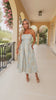 Feel like royalty in our gorgeous AX Paris duck egg jacquard bandeau A-line midi dress. Featuring our stunning jacquard fabric with golden floral patterns, a strapless fitted top with rubber facing, a shirred back, side pockets, a side zip closure and a structured A-line midi skirt with box pleat details. Pair it with some court heels and a matching clutch for a stunning wedding guest look.