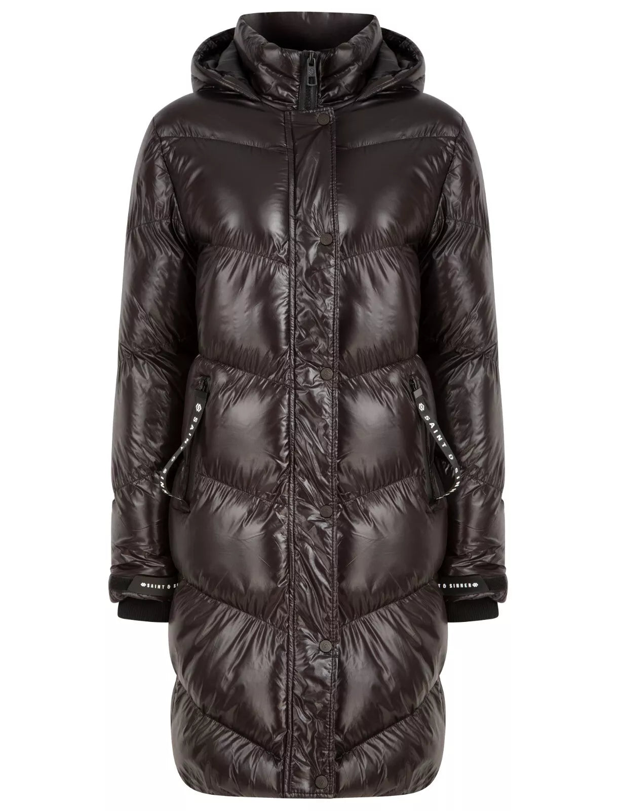 This black hooded quilted puffer coat is bang on trend for this winter! Featuring a padded hood , zip and stud fastening, front zip pockets with logo, cuffed sleeves , just pair with a jumper and jeans for a comfy on trend look!